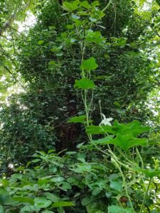 La décomposition des végétaux au sol est un élément indispensable à la fertilité de la terre pour la croissance des plantes. Prenons l’exemple de la consoude, avec ses racines allant jusqu’à 2 m de profondeur, elle est une des rares plantes à aller chercher des minéraux dont le calcium, la potasse et le bore en plus des vitamines qu’elle contient. En tant que vivace non persistante, sa décomposition annuelle enrichit le sol et nourrit les autres plantes compagnes, permettant même l’arrivée d’autres plantes. La mélisse, par sa constitution est d’un excellent rapport carbone sur azote,une fois taillée et reposée au sol, nous obtenons un paillage de luxe. Laissons le foin et la paille aux animaux, plantons des bordures densifiées de mélisse, de consoude, de sauge ou encore d’hélycrise dont le seul but est de créer une biomasse. En syntropie, on plante des cassissiers, des framboisiers, des glycines, des amélanchiers au potager ! L’objectif est d’atteindre un sol non pas équilibré mais mature. Densification des vivaces pérennes sur les bordures, implantations d’arbustes dans les cultures annuelles ; aie, aie, aie ! ça se complique ! Choisir le meilleur emplacement, penser à l’exposition, au cycle de la plante, à sa hauteur afin de lui attribuer son rôle pour les autres.