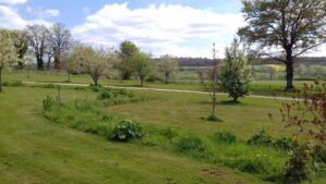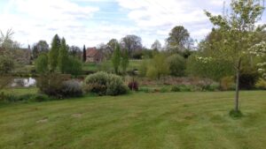 Conception et réalisation d’un parc de plus d’un hectare avec plantations de plus de 400 variétés d’arbres, arbustes, arbrisseaux. Implantation d’un verger, de haies champêtres et ornementales, d’une oseraie et framboiseraie, création et végétalisation d’un plan d’eau, parcours de jachères fleuries et engrais verts. Création du potager.